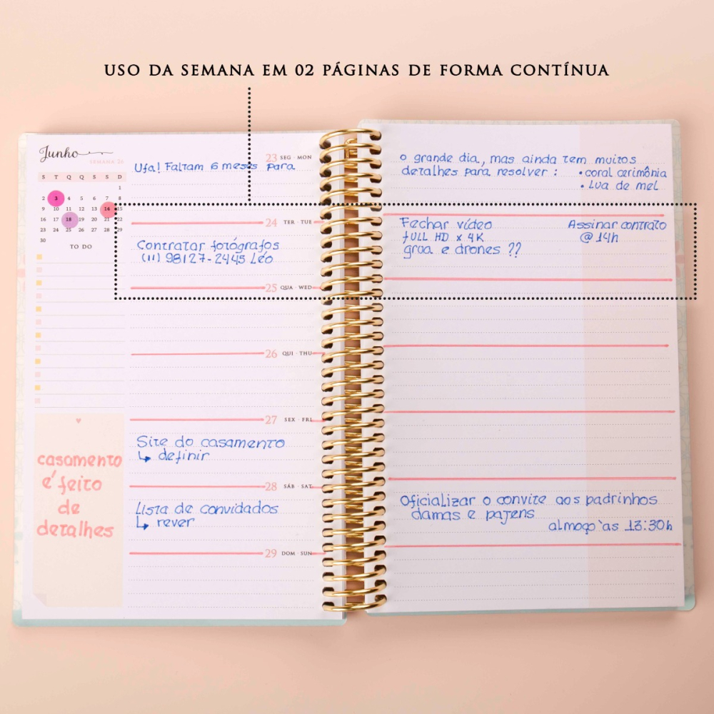 Encadernação: espiral leve e resistente (opções em Gold, Rose Gold ou Silver Platinum)